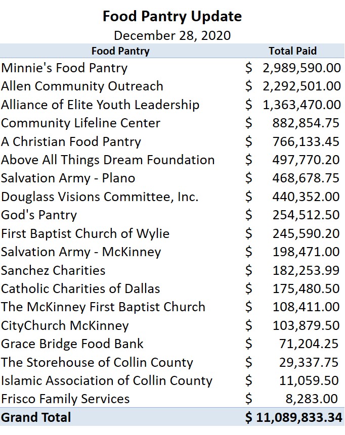 On May 11, the Collin County Commissioners Court approved the distribution of direct financial assistance for housing, utilities, and groceries.